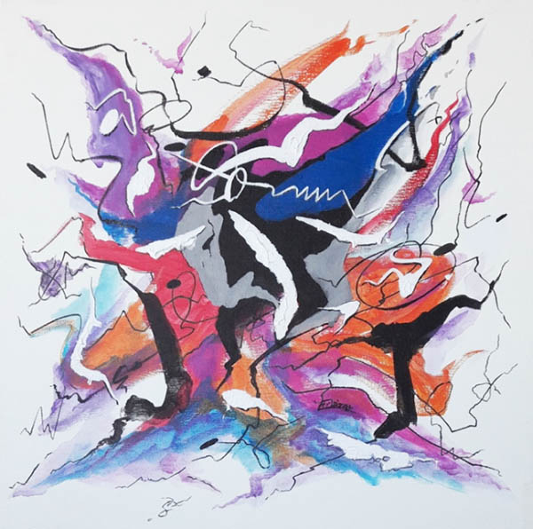 Esa sinestesia que existe entre música y pintura hace que escuchando a Schuber, Chopin, Sibelius, Bethoven, B.B- King, Leonard Cohen,… de repente afloren emociones y sensaciones que voy trasladando al lienzo de manera espontanea y casi autómata, con manchas de colores y formas acompasadas a ritmo de trazos y pinceladas que imprimen movimiento y vibración a la composición; cada elemento desempeña su papel con más o menos protagonismo, como los instrumentos de una orquesta o banda de música.